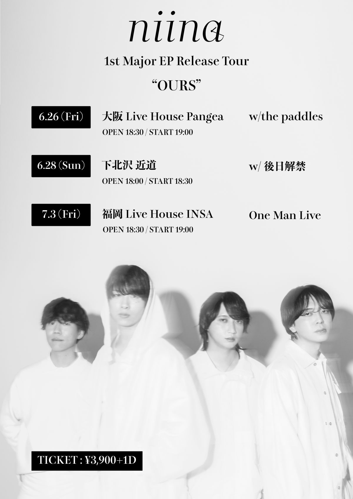 niina Major Debut Digital EP Release Tour "OURS" 大阪編 対バン解禁!